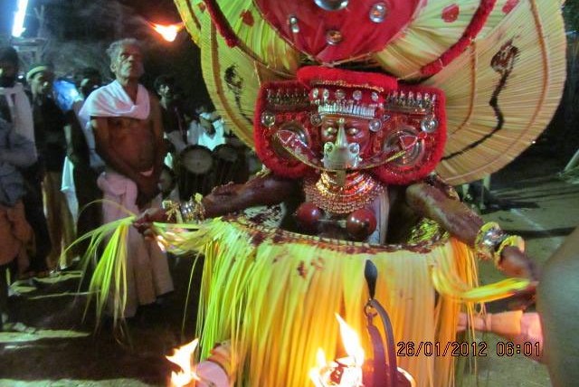 കുറ്റിയാട്ടൂര് ചാത്തോത്ത് തറവാട് ദേവസ്ഥാനത്തും മുതുകുട കല്ലാഴിയിൽ തറവാടിലും പഴയങ്ങാടി താവം വെള്ളൂവളപ്പില് തറവാടിലും ഈ തെയ്യം കെട്ടിയാടുന്നു.