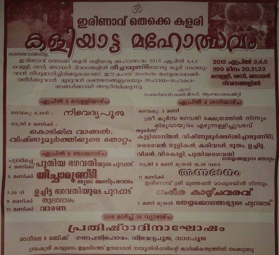 Theyyam Meenam 20,21,22 (April 3,4,5)