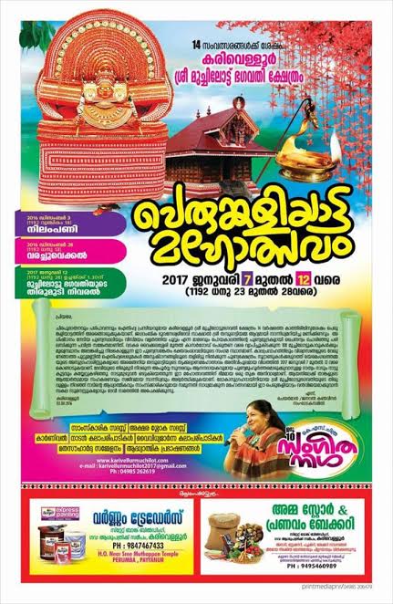 കരിവെള്ളൂർ ഓണക്കുന്നിലെ മുച്ചിലോട്ടു ഭഗവതി ക്ഷേത്രമാണ് ആദി മുച്ചിലോട് എന്നറിയപ്പെടുന്നത്. കാസർഗോട് ജില്ലയിലെ പെരുതണ മുതൽ വടകര വൈക്കലശ്ശേരി വരെയുള്ള 113 ഓളം മുച്ചിലോട്ടു കാവുകളിൽ പ്രഥമ സ്ഥാനം കരിവെള്ളൂരിനാണു. വാണിയ സമുദായത്തിന്റെ കുല ദേവതയായ മുച്ചിലോട്ടു ഭഗവതിയുടെ ആരൂഡ സ്ഥാനമാണിത് ഐതീഹ്യവും ചരിത്രവും കെട്ടുപിണഞ്ഞു കിടക്കുന്ന ഒരുപാട് ശേഷിപ്പുകൾ ഇവിടെ കാണാം.