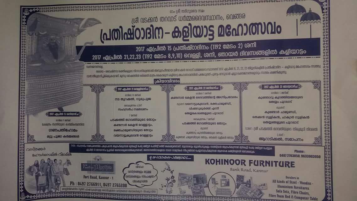 Theyyam festival on April 21,22 & 23, 2017 (not in every year)