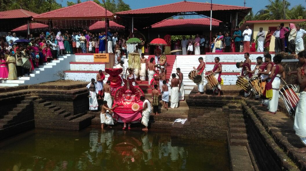 മറ്റൊന്ന് പറയുന്നത് അഴീക്കോട് കടപ്പുറത്ത് മത്സ്യം പിടിക്കാന് പോയോ മൂവര്ക്ക്പ (നായര്, തീയന്, കാതിയന്) കൈവന്ന കൂറ്റന് മത്സ്യം തോര്ത്തിലാക്കി അവര് ഓലാടന് കുന്നുമ്മേല് വെച്ച് ഓഹരി വെക്കവേ മീന് അപ്രത്യക്ഷമായി. ജ്യോത്സന് വന്നു അത് മത്സ്യാവതാരം പൂണ്ട വിഷ്ണുവാണെന്നു തിരിച്ചറിയുകയായിരുന്നു.