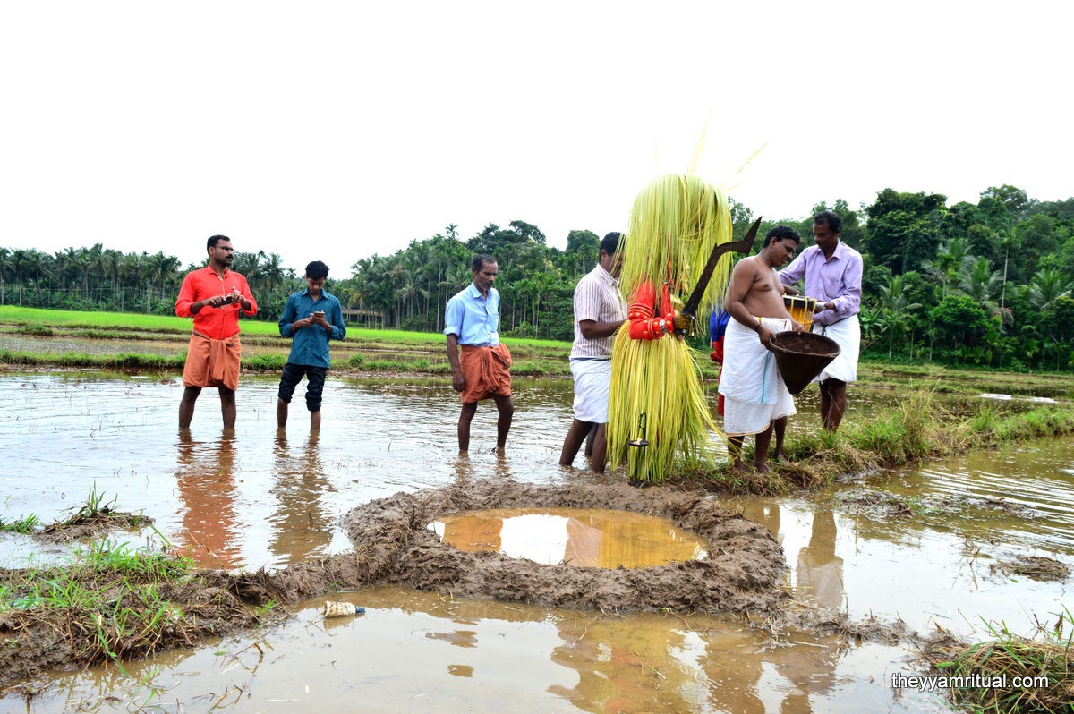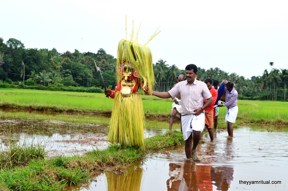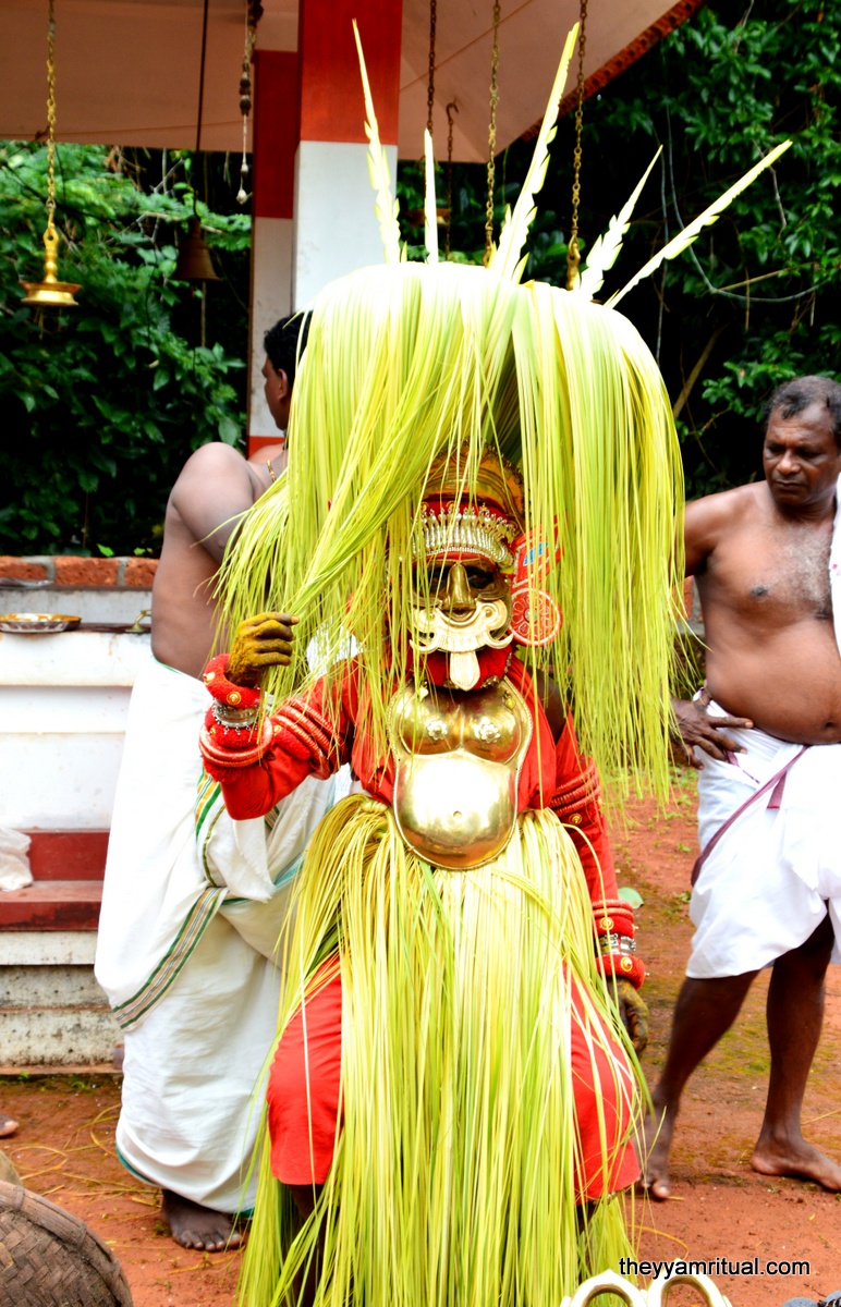 This Theyyam is performed at Cheruvathur, Thimiri, Kottappuram Sree Valiya valappil Chamundi Devasthanam situated in Kasaragod District. Valiya Valappil Chamundi Theyyam also called “Valiya Valappilamma” is mainly considered Goddess Theyyam who protects Paddy field of place called Thimiri and surroundings. The farmers in this area starts yearly farming only after this Theyyam sowing the rice seeds. Earlier this place was under “Thazhakkattu Mana”. Madayil Chamundi (Goddess Kali) has assigned the responsibility of protecting the paddy field of Thimiri and surroundings which starts from the place called “Nalilaamkandam” to “Nhanankai” to Valiya Valappil Chamundi.